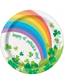 Set 8 farfurii desert, Rainbow Shamrock, 17 cm, de unica folosinta, multicolore, fabricate din carton, pentru masa festiva organizata de St Patrick's Day.