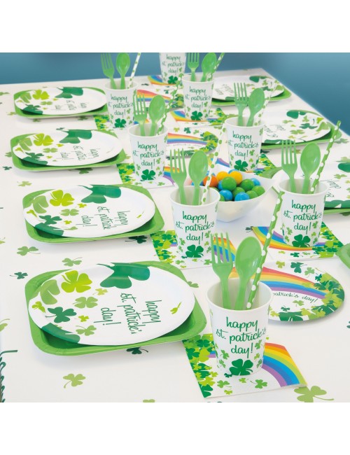Set 8 farfurii desert, Rainbow Shamrock, 17 cm, de unica folosinta, multicolore, fabricate din carton.
