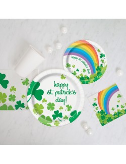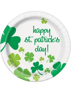 Set 8 farfurii happy St Patrick's day!, 22 cm, de unica folosinta, multicolore, fabricate din carton.