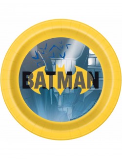 Set 8 farfurii desert, Batman, 17 cm, de unica folosinta, multicolore, fabricate din carton.