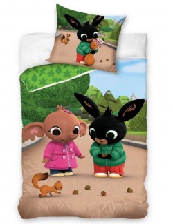 Lenjerie pat Iepurasul Bing, 140 x 200 cm, bumbac 100%, alcatuita din 2 piese: un cearceaf pentru pilota (200x140 cm) si fata de perna (70 x 90 cm), inchidere cu fermoar.
