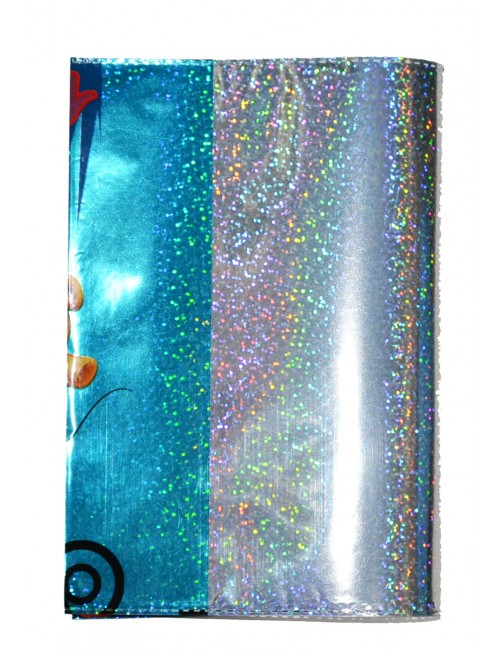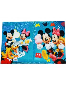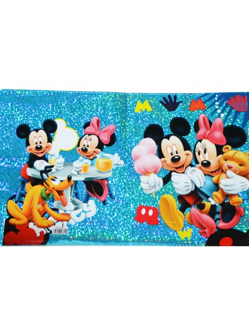Coperta holografica pentru caiet A5, Minnie si Mickey Mouse alaturi de prietenul Pluto, culori albastru-argintiu.