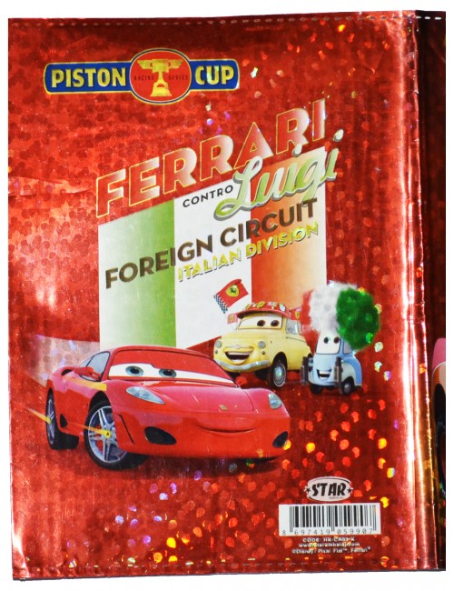 Coperta holografica pentru caiet A5,Disney Cars, culori rosu-argintiu.