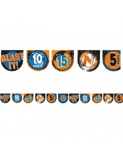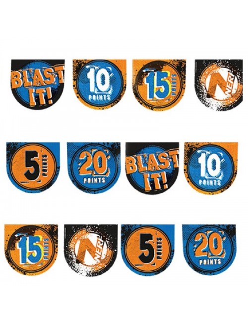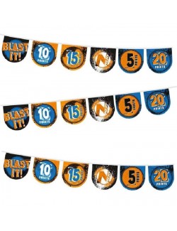 Ghirlanda party Nerf, lungime 400 cm, inaltime fanion 17 cm, din carton imprimat pe ambele fete.