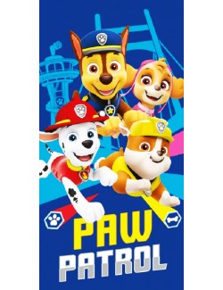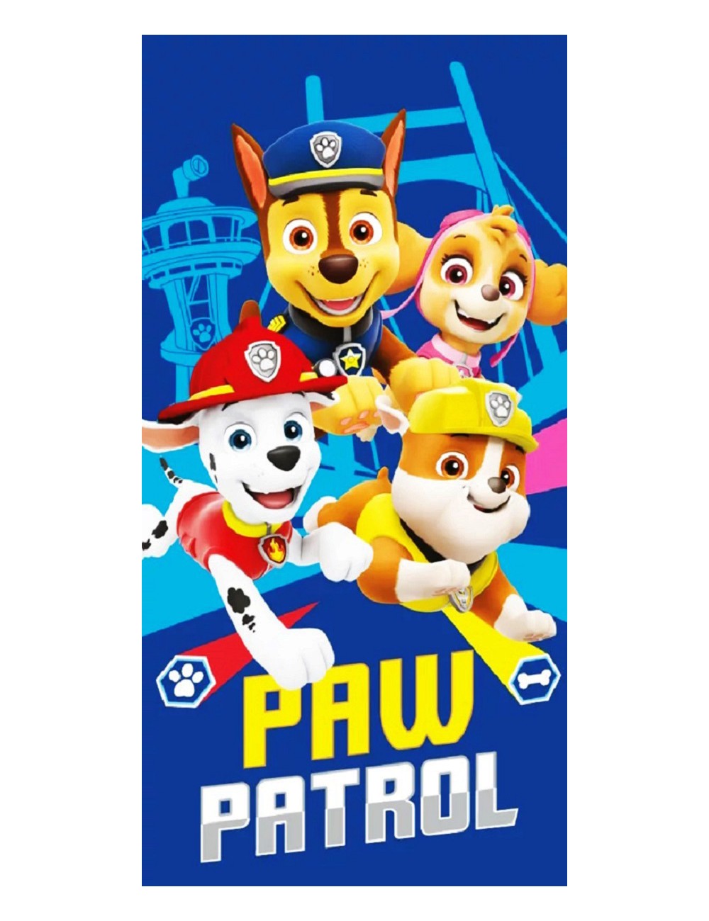 Prosop plaja Patrula catelusilor, 140 x 70 cm, albastru, imprimeu Skye, Chase, Marshall si Rubble, 100% bumbac.