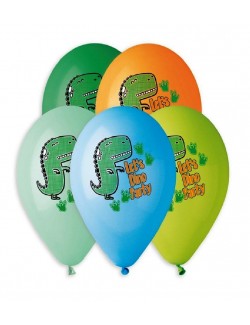 Set 5 baloane multicolore, cu Dinozauri, inaltime aprox. 33 cm, culori asortate: nuante de verde, bleu, portocaliu, fabricate din cauciuc natural, biodegradabile.