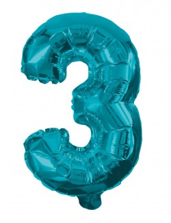 Mini-balon folie Cifra 3, albastru, inaltime 10 cm, este potrivit doar pentru umplerea cu aer si necesita sudare.