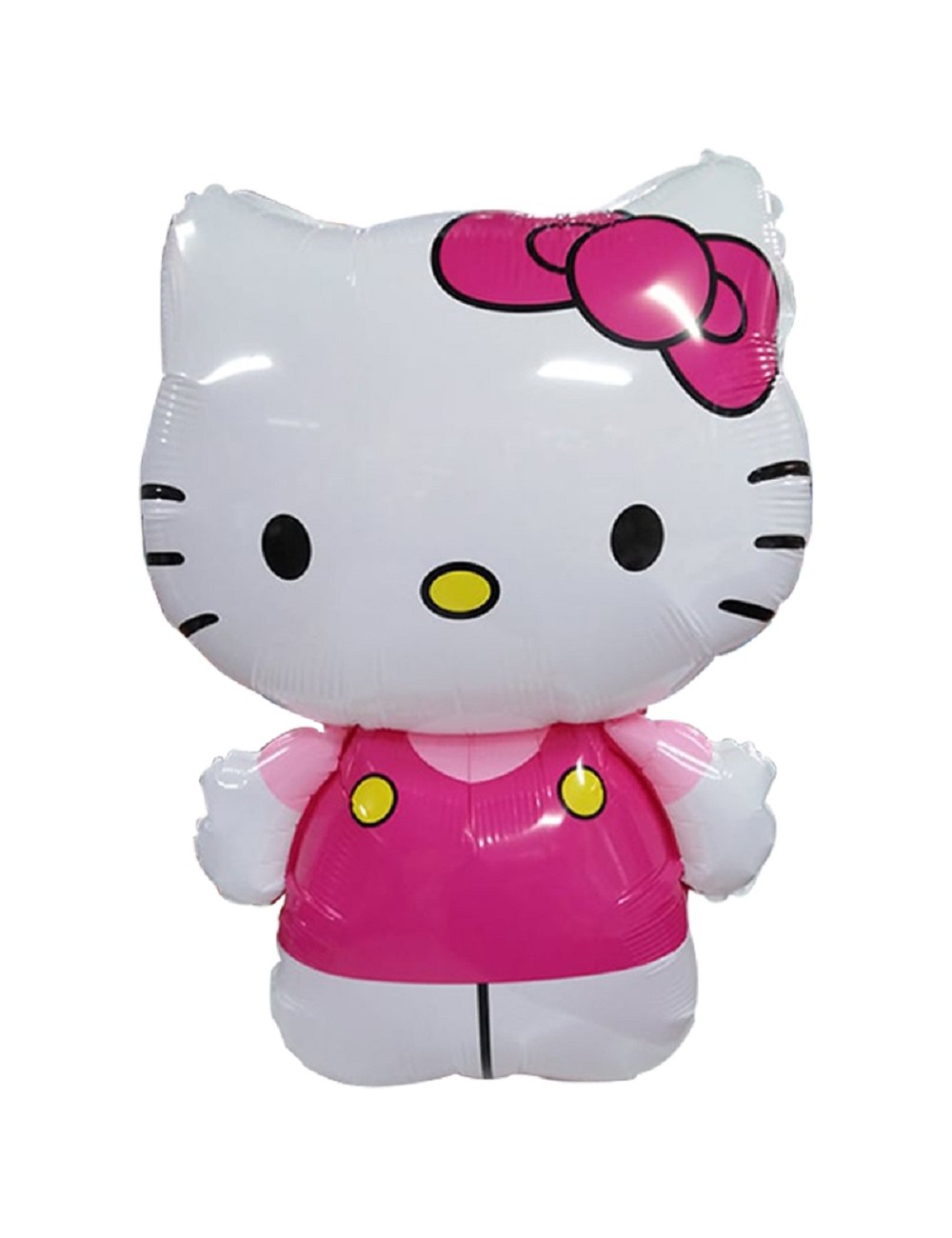 Balon folie, Hello Kitty, 77x54 cm, culori alb-roz, imprimeu identic fata-verso, poate fi umplut cu aer sau heliu.