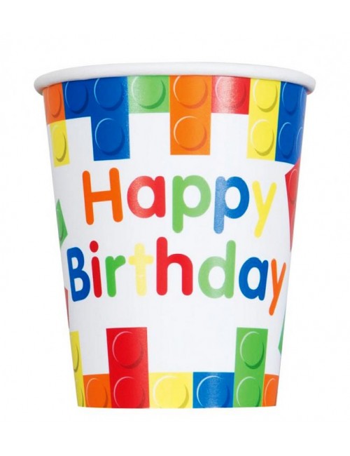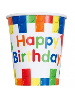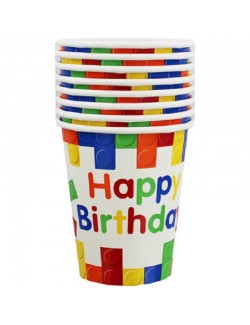 Set 8 pahare Lego Bricks - Caramizi, capacitate 266 ml, din carton, de unica folosinta, potrivite pentru o petrecere tematica.