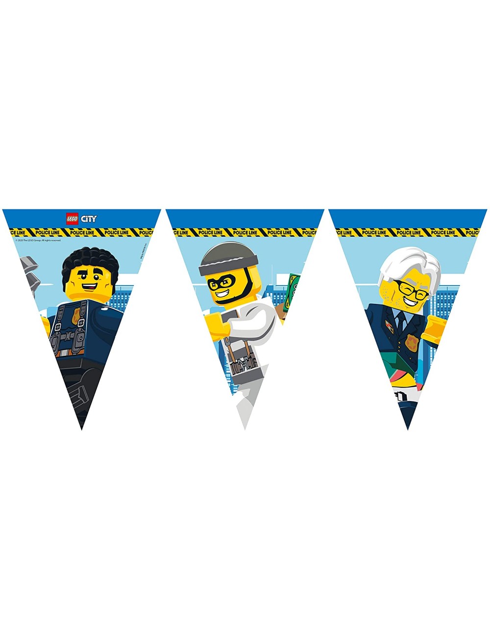Ghirlanda fanioane Lego City, cu lungime de 230 cm, alcatuita din 9 fanioane multicolore din hartie.