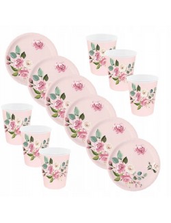 Set 6 pahare carton roz, imprimeu cu Flori, de unica folosinta, capacitate 266 ml.