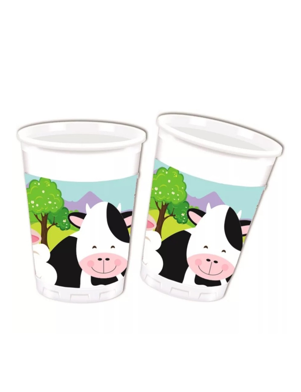 Set 8 pahare party, Animale Ferma, 200 ml, de unica folosinta, fabricate din plastic, perfecte pentru o petrecere tematica.