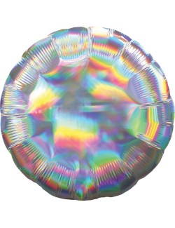 Balon folie, argintiu holografic, 43 cm, rotund, potrivit pentru umplerea cu aer sau cu heliu.