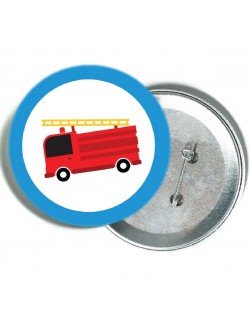 Insigna Masina Pompieri, diametru 56 mm, inchidere cu ac de siguranta.
