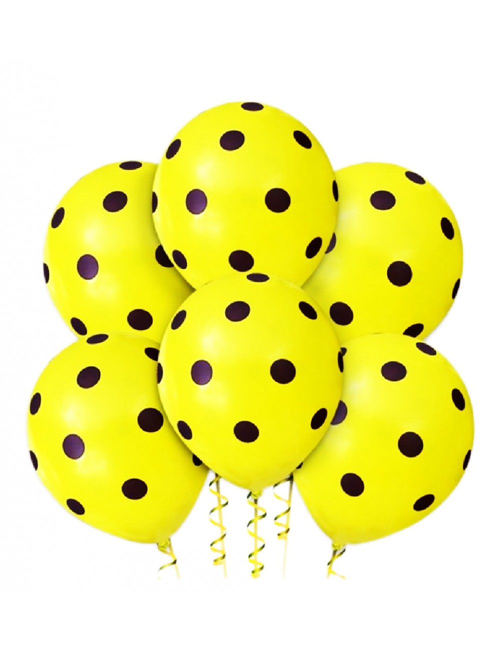 Set 10 baloane galbene cu buline negre, 30 cm, fabricate din latex-cauciuc natural, biodegradabile.