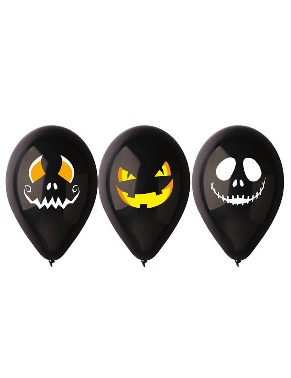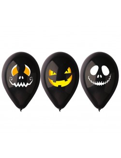 Set 3 baloane latex, Zambete de Halloween, negre, 30 cm, potrivite doar pentru umplerea cu aer. Este recomandata umflarea cu pompa.