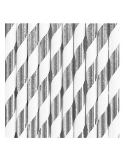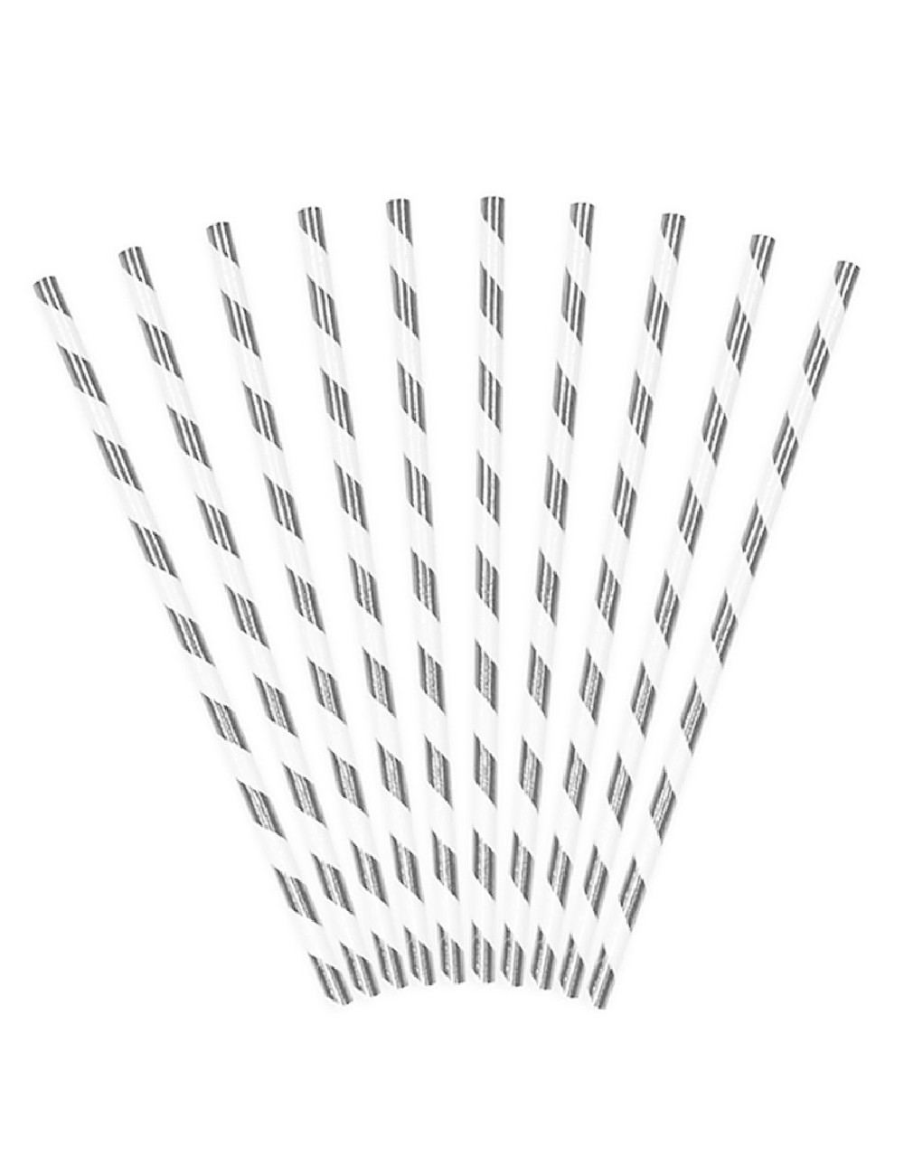 Set 10 paie cu spirale argintiii, lungime 19,5 cm, alb-argintiu, potrivite doar pentru bauturi reci.