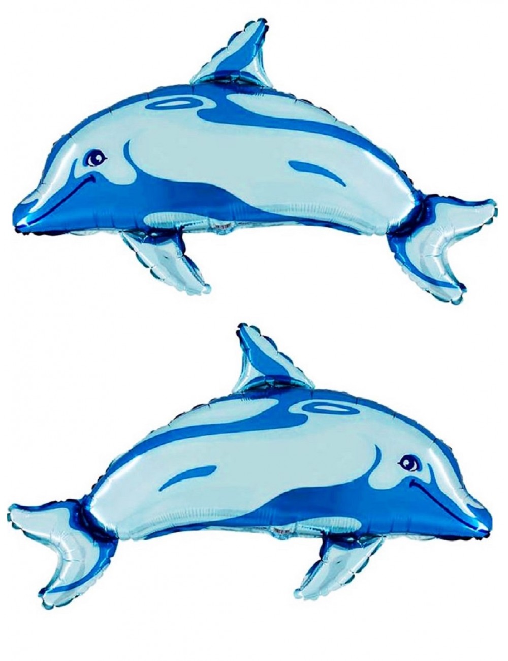 Balon folie metalica, Delfin, 89 x 53 cm, culori alb-albastru, imprimeu identic pe ambele parti.