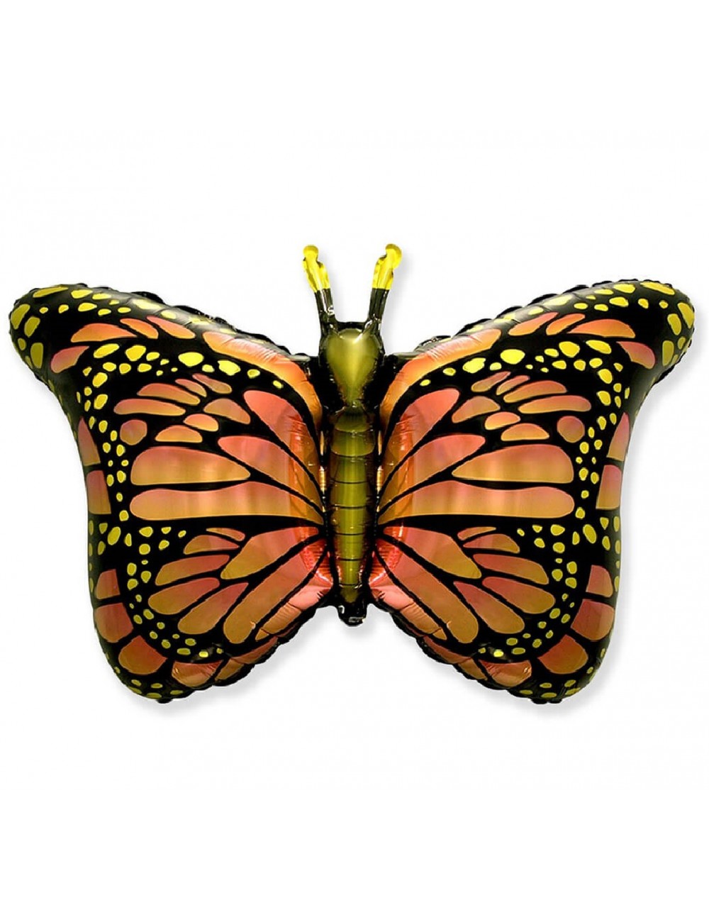 Balon folie, Fluture Monarh, 97 x 55 cm, culori negru-portocaliu, imprimeu identic pe ambele parti, fi umflat cu aer sau cu heliu.