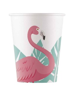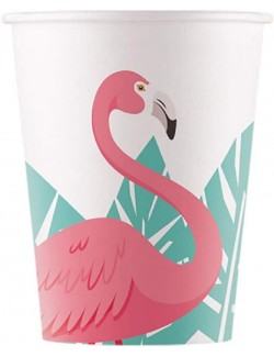 Set 8 pahare Party, Flamingo roz, din carton, capacitate 200 ml, de unica folosinta.