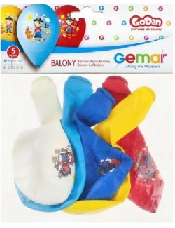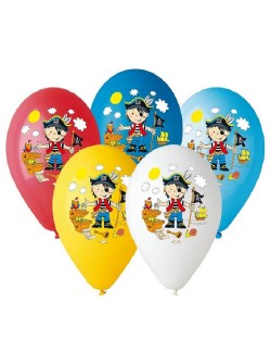 Set 5 baloane Pirati, multicolore, 30 cm, din latex-cauciuc natural, culori rosu, alb, galben, bleu si albastru.