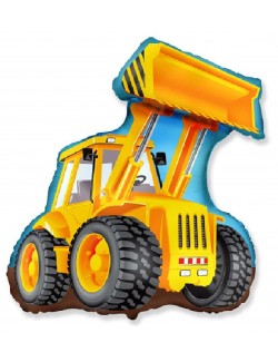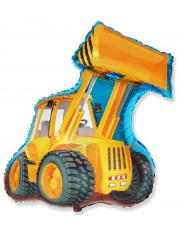 Balon folie metalica, Excavator, dimensiuni 83 x 63 cm, multicolor, imprimeu identic fata-verso, pentru petreceri ale micilor fani constructii.