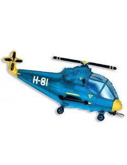 Balon folie, Elicopter albastru, lungime 43 cm, inaltime 23 cm, imprimeu identic fata-verso, culori albastru-alb.