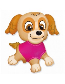 Balon folie, Catelusa Skye, 36 cm, culori maro-fucsia, imprimeu identic pe ambele parti, poate fi umflat cu heliu sau cu aer.