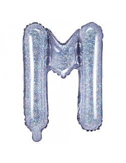 Balon folie, Litera M, argintiu holografic, inaltime 35 cm, potrivit doar pentru umplerea cu aer, perfect pentru decorare sau Ziua Abecedarului.