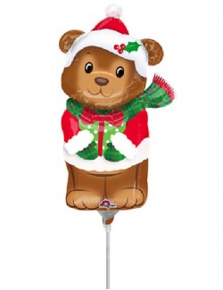 Balon folie, Urs Craciun, inaltime 39 cm, latime 20 cm, imprimeu identic fata-verso.