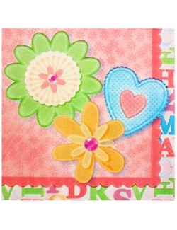 Set 20 servetele, Pastel Flowers, dimensiuni 33 x 33 cm (extins), din 2 straturi de hartie, fond gri, imprimeu in nuante de roz, coloranti pe baza de apa, biodegradabile.