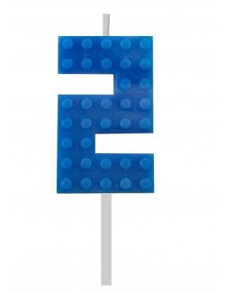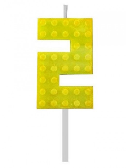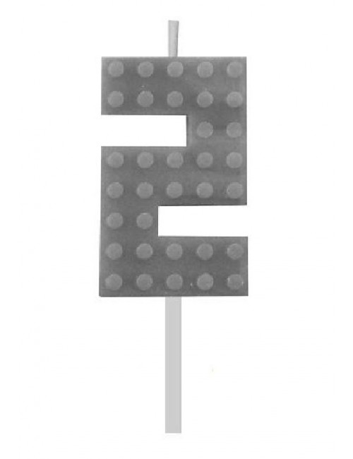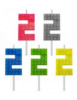 Lumanare tort, Cifra 2 Bricks, inaltime 5,5 cm, din parafina, culori diferite: verde, galben, gri, albastru, rosu, este fixata pe un suport din plastic, perfecta pentru petreceri aniversare.