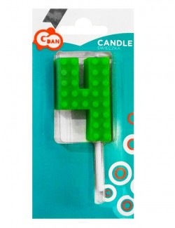 Lumanare tort, Cifra 4 Bricks - Constructii, inaltime 5,5 cm, din parafina, culori diferite: verde, galben, gri, albastru, rosu, este fixata pe un suport din plastic, perfecta pentru petreceri aniversare.
