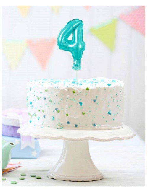 Mini-Balon folie Cifra 4, bleu-ciel, inaltime 13 cm, este potrivit doar pentru umplerea cu aer.