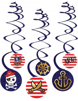 Set 6 decoratiuni suspendate, Pirates Map, inaltime medalion 13 cm, multicolore, din carton.