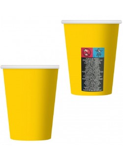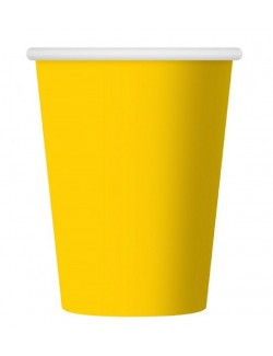 Set 6 pahare galbene, din carton, 250 ml, de unica folosinta, perfecte pentru petreceri.