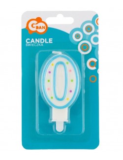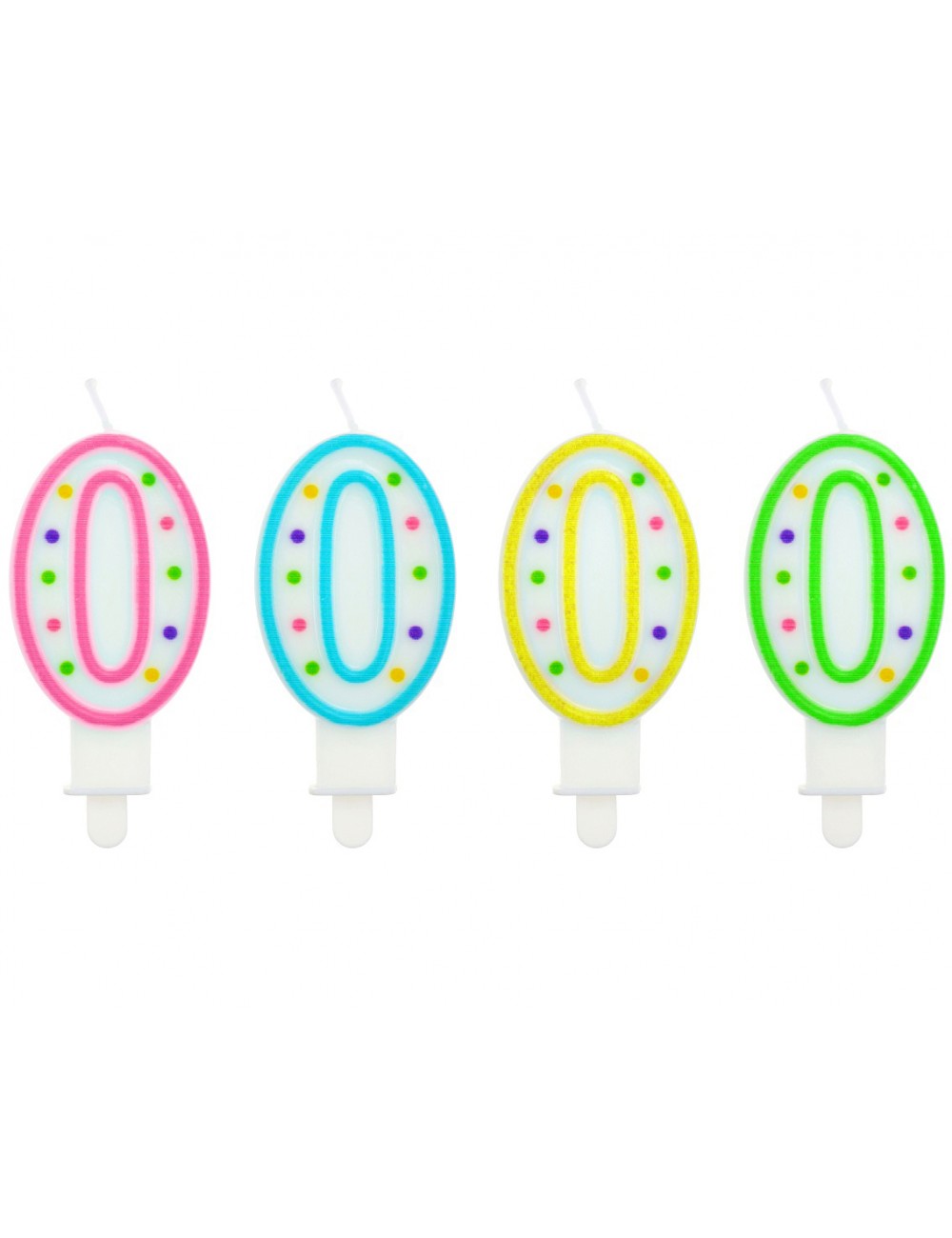 Lumanare pentru tort, Cifra 0, din parafina alba cu puncte colorate si chenar colorat, perfecta pentru petreceri aniversare.