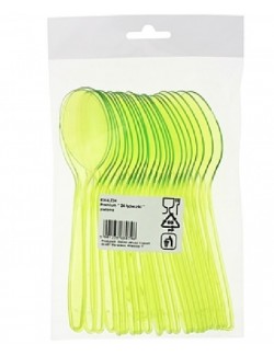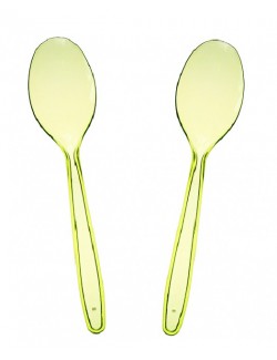 Set 10 lingurite transparente, verde kiwi, din plastic, reutilizabile.