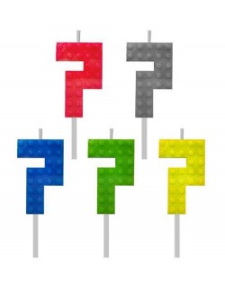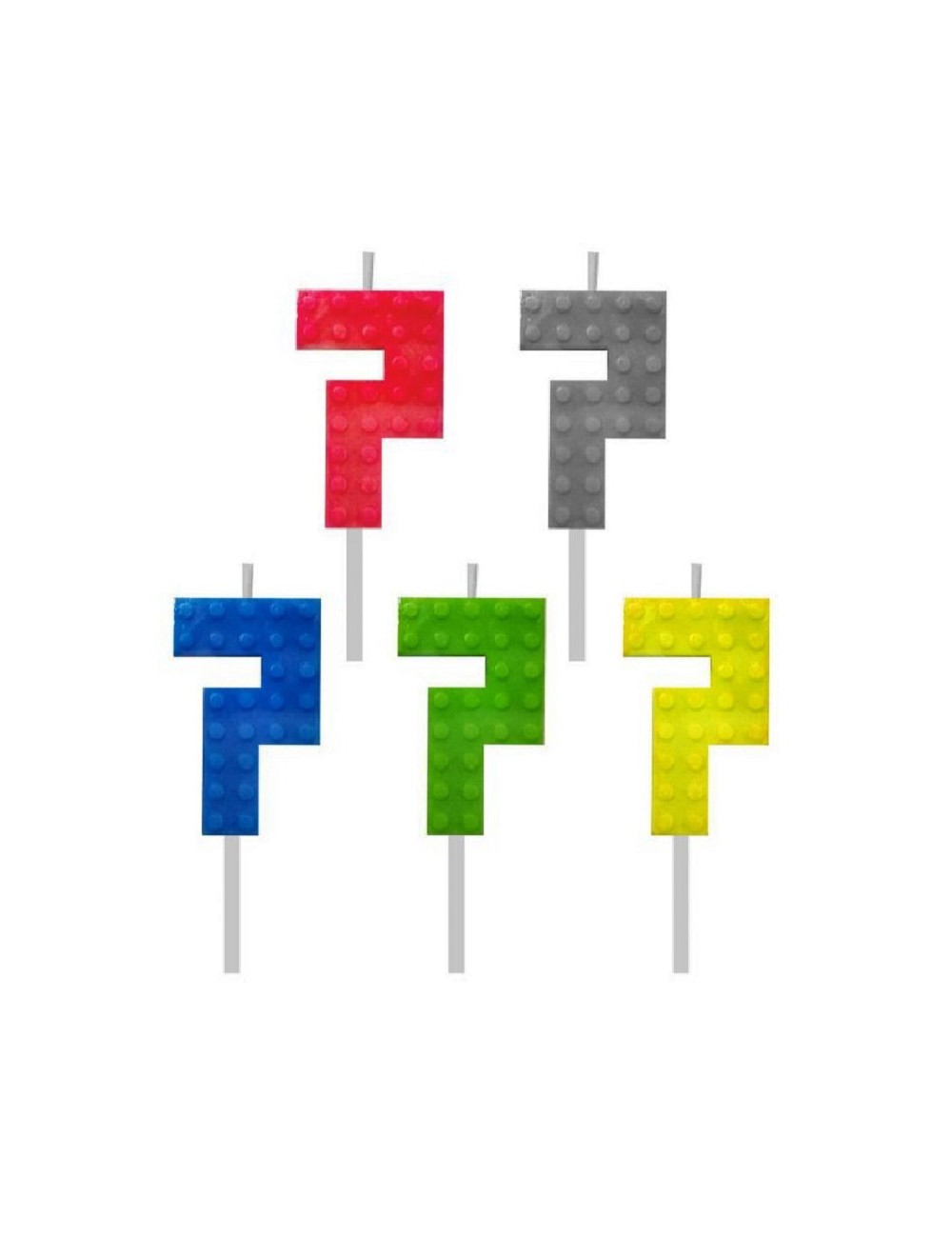 Lumanare tort Cifra 7 Bricks - Constructii, inaltime 5,5 cm, din parafina, culori diferite: verde, galben, gri, albastru, rosu, este fixata pe un suport din plastic, perfecta pentru petreceri aniversare.