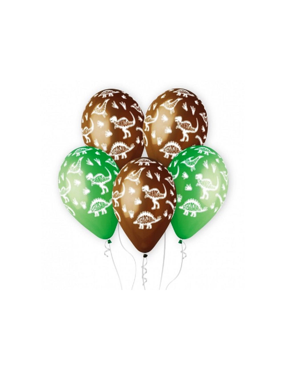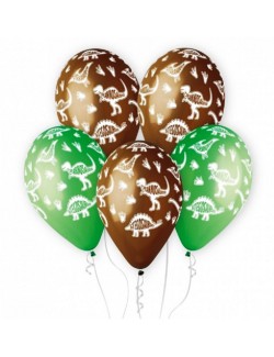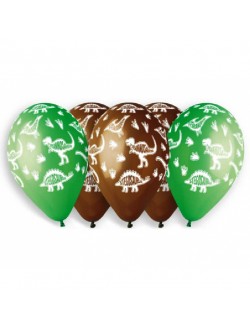 Set 5 baloane Dinozauri Stegosaurus, 33 cm, calitate premium, din cauciuc natural biodegradabil - latex, culori verde si maro, imprimate cu dinozauri Stegosaurus.