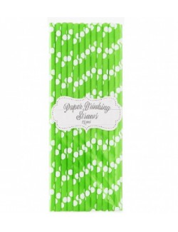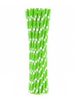 Set 24 paie verzi cu buline albe, lungime 19,7 cm, din hartie, potrivite pentru bauturi reci.
