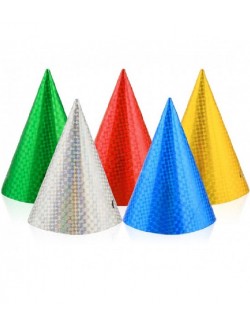Set 6 coifuri holografice, multicolore, inaltime 16 cm, diametru 11 cm, prindere cu elastic sub barbie.
