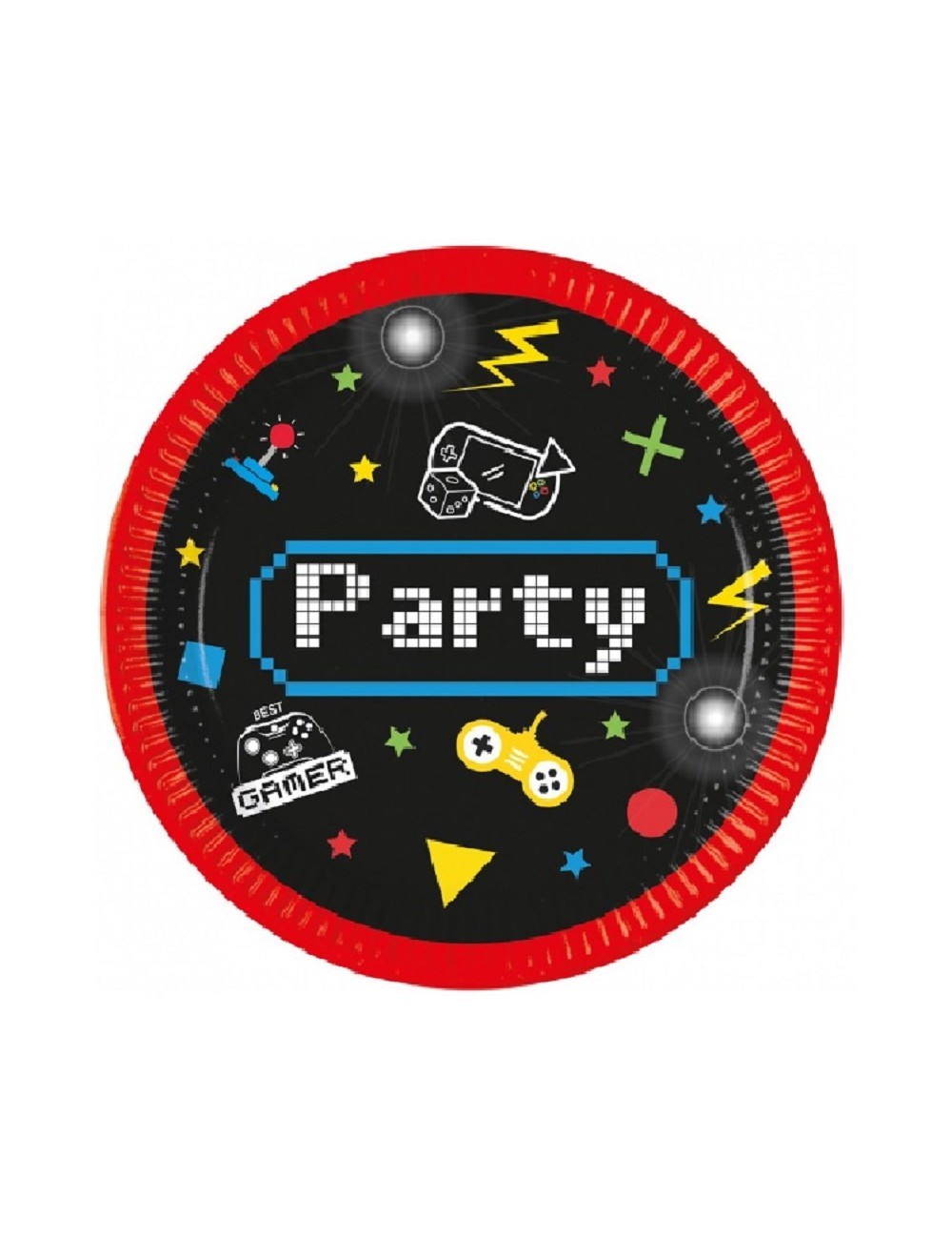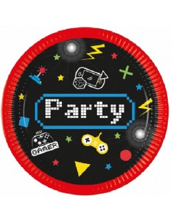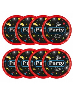 Set 8 farfurii Gaming Party, diametru 20 cm, de unica folosinta, fabricate din carton, culori intense, materiale ecologice.