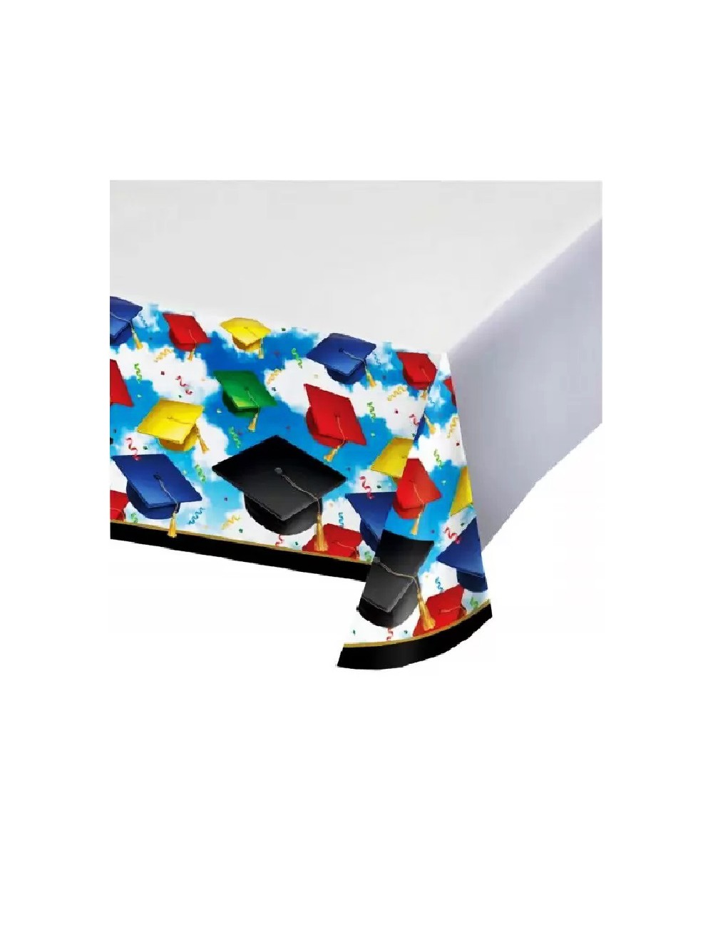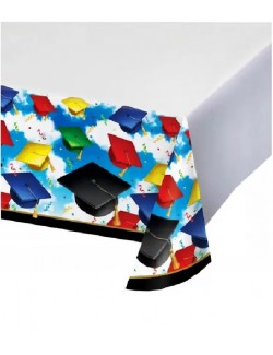Fata de masa, Absolvire, multicolora, dimensiuni 137 x 259 cm, din plastic, portivita pentru sarbatorirea absolvirii.