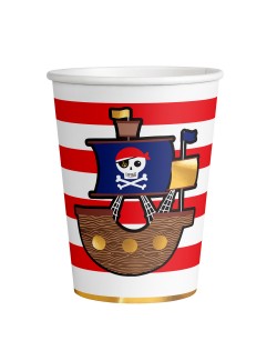 Set 8 pahare Party Pirati, din carton, capacitate 250 ml, de unica folosinta, perfecte pentru petreceri tematice.