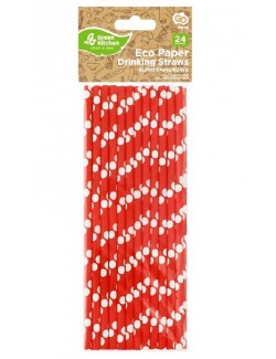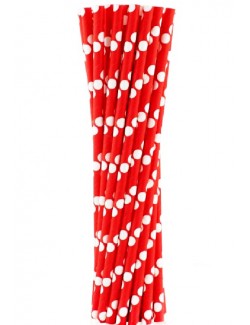 Set 24 paie rosii cu buline albe, lungime 20 cm, din hartie, potrivite pentru bauturi reci (temperatura maxima 40C).