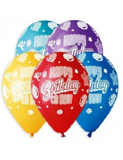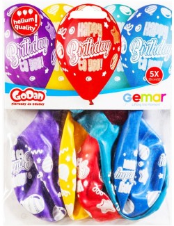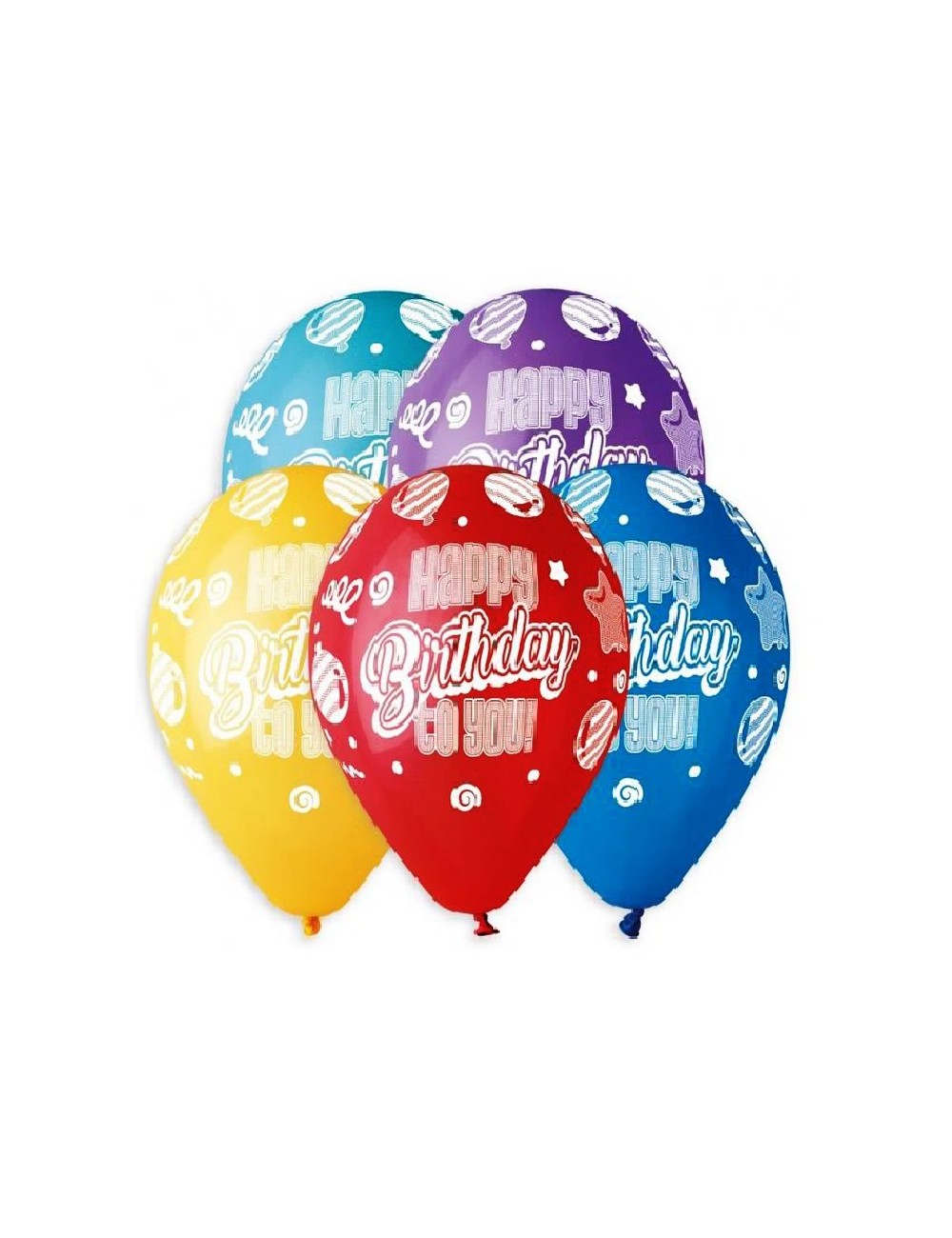 Set 5 baloane latex, Happy Birthday To You!, 33 cm, culori asortate, fabricate din cauciuc natural biodegradabil - latex.