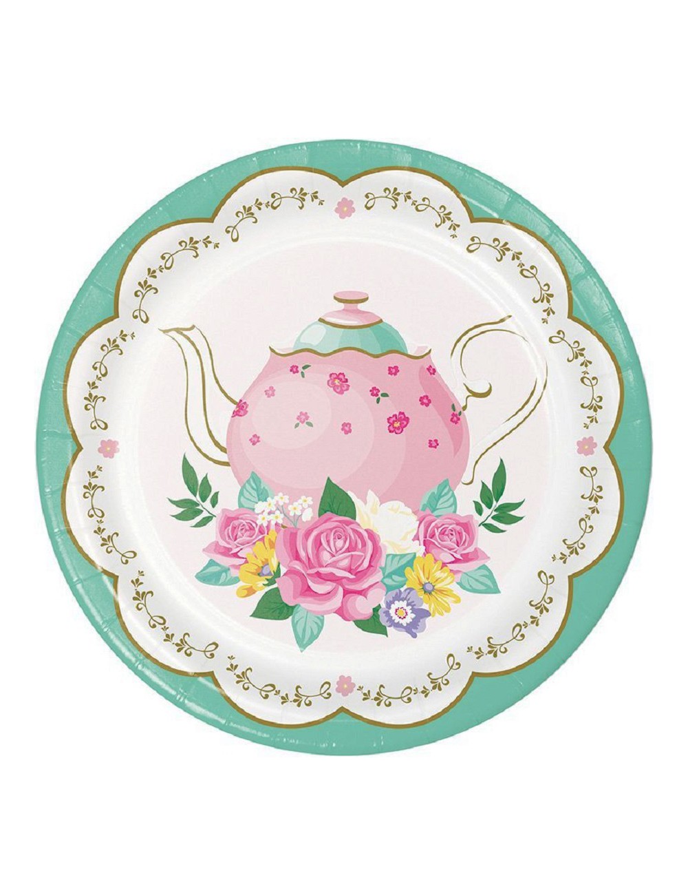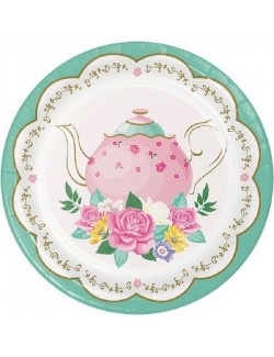 Set 8 farfurii desert, Floral Tea Party, diametru 18 cm, de unica folosinta, fabricate din carton, nu contin plastic.
