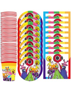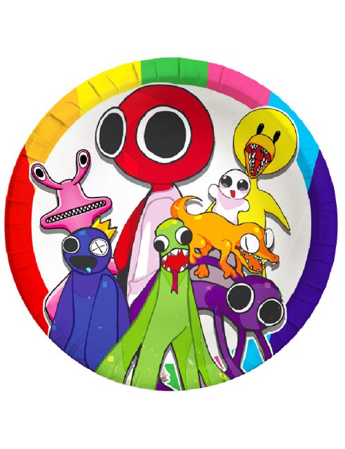 Set 10 farfurii, Rainbow Friends, diametru 18 cm, de unica folosinta, fabricate din carton, culori frumoase si intense.