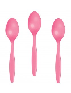 Set 24 lingurite roz, Candy Pink, reutilizabile, din plastic rezistent, lungime 15,5 cm.